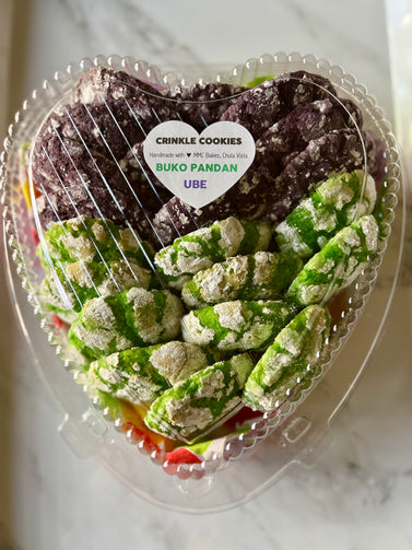 Choose from our popular flavor combos or just your faves below: Ube [U] Purple Yam, Buko Pandan [BP] Coconut & Pandan Leaf, Calamansi [CAL] Philippine Lemon, Red Velvet [RV] with White Chocolate Morsels, Salty Blondie [SB] Caramel crinkle with Salted Butterscotch Morsels, & Chocolate [CHOC].